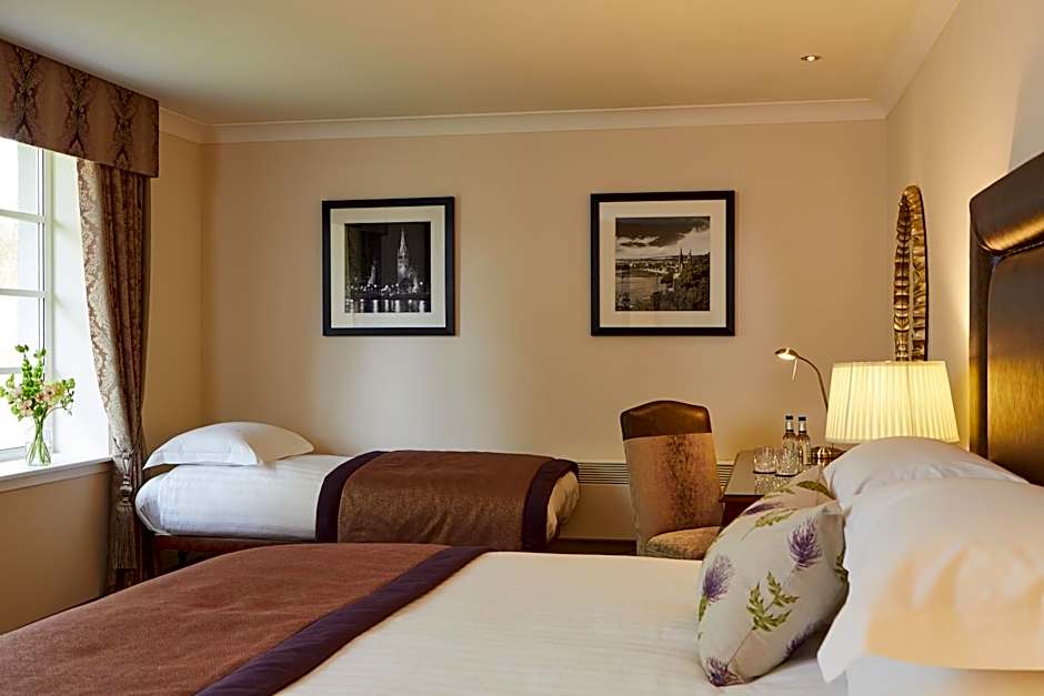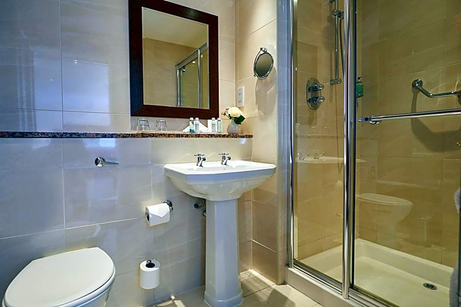 Feature rooms contain either a half-canopied or four-poster bed, as well as a seating area and a desk. The private bathrooms contain Arran Aromatics toiletries. Additional amenities include complimentary bottled water and a fruit bowl.